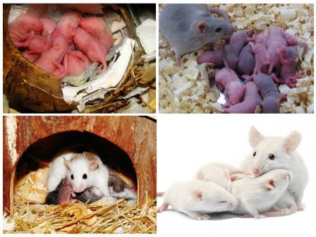 Как мы уже отметили ранее, беременность протекает примерно три недели. Самка всегда выбирает уютное и теплое место для того, чтобы обеспечить комфортное пребывание для своих детенышей. В период беременности самка спокойна, но после родов становится довольно агрессивной, чем и защищает новорождённых мышат.